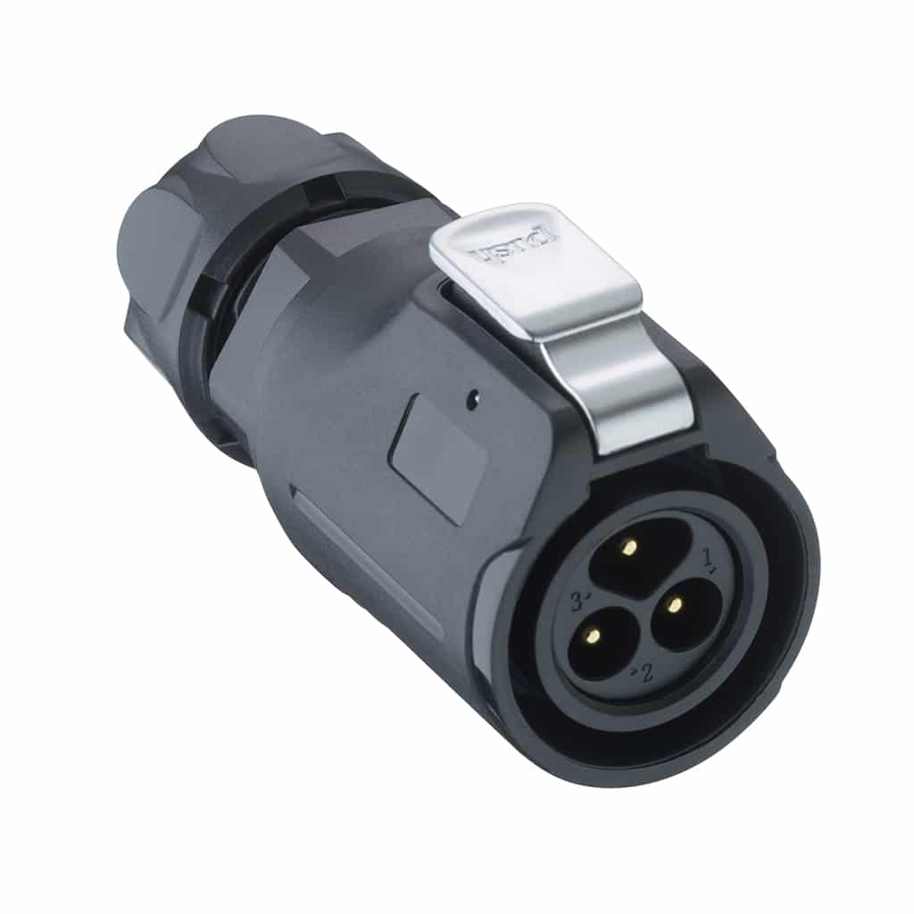 The 02 Series is a Circular Power Connector with the Quicklock mechanism from Lumberg. The plug has a locking latch and is available with 2, 3, 4, 5, 7, 8 & 9 poles. IP67 when mated. Size 16 for signal and load currents up to 10A (2 ⁓ 4 poles up to 10A 5 ⁓ 9 poles 5A) Gold plated contacts, rated to 400V. Cable dia 3.00 ⁓ 8.5mm. Please ask for further details.