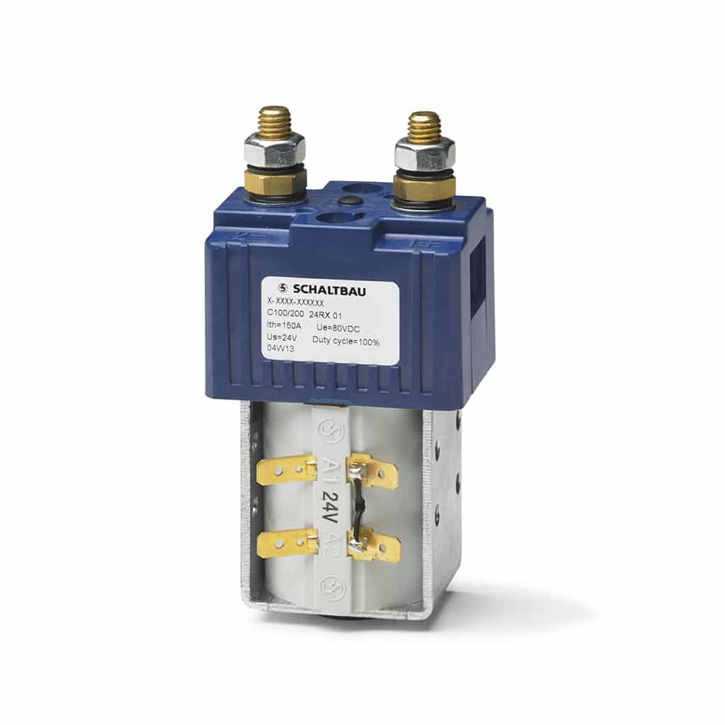 The C100 DC contactor series from Schaltbau is designed with a magnetic blowout mechanism. It can switch battery voltages of up to 80 volts unidirectionally. The single-pole NO contactor is available in four sizes: for continuous currents of up to 60, 100, 150 & 250A.