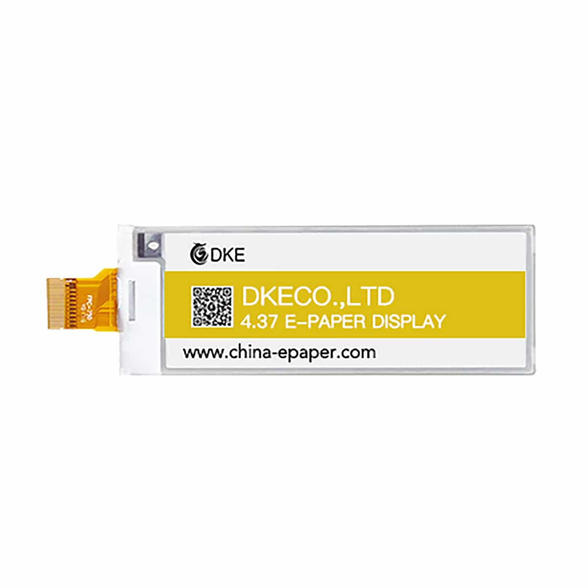 The DEPG0437 is an Active Matrix Electrophoretic Display (AM EPD). The 4.37″ active area contains 480×176 pixels. The module is a TFT-array driving electrophoresis display, with integrated circuits including gate driver, source driver, MCU & SPI interface, timing controller, oscillator, DC-DC, SRAM, LUT, VCOM.