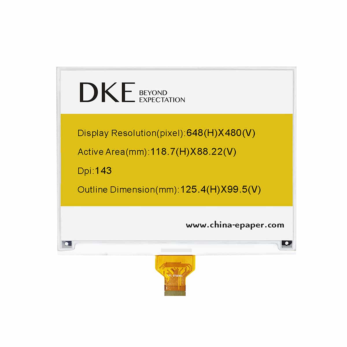 The DEPG0583 series is an Active Matrix Electrophoretic Display (AM EPD). The 5.83″ active area contains 648(H)×480(V) pixels. The module is a TFT-array driving electrophoresis display, with integrated circuits including gate driver, source driver, MCU & SPI interface, timing controller, oscillator, DC-DC, SRAM, LUT, VCOM.