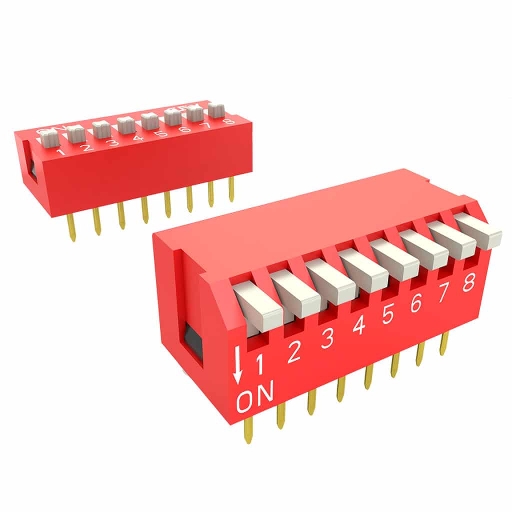 The DS1040 DIP switch from Connfly is available in standard and piano style. Positions from 1 to 12. The housing is UL 94V-0 rated, standard colour Red, also available in Blue.