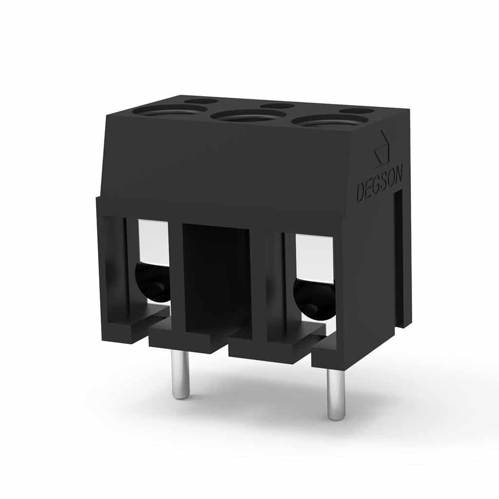 DG300 10mm pitch series is a 12.8mm high leaf spring connector from Degson. Product is available in multiple poles and different colours upon request. Due to the 10mm pitch structure these cannot be made up