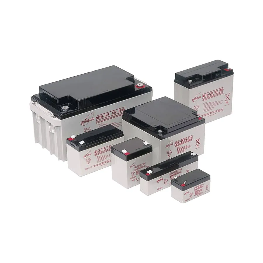The Genesis NP range of sealed lead acid batteries from EnerSys feature heavy duty thick lead calcium grids for years of dependable performance. The high energy density design, factory sealed case and leak proof construction ensures that these re-chargeable sealed lead acid batteries are extremely reliable and virtually maintenance-free. Flame retardant versions are also available.