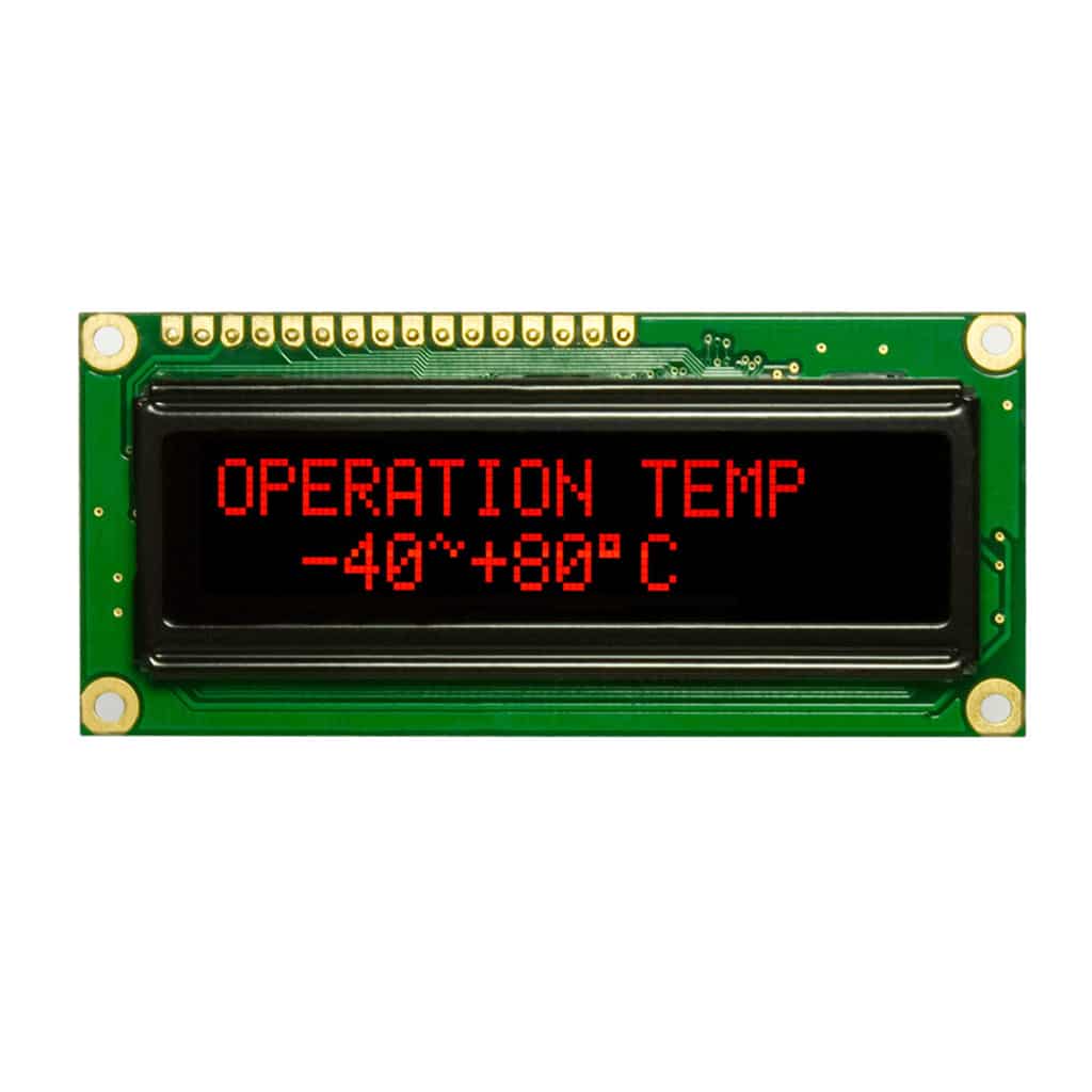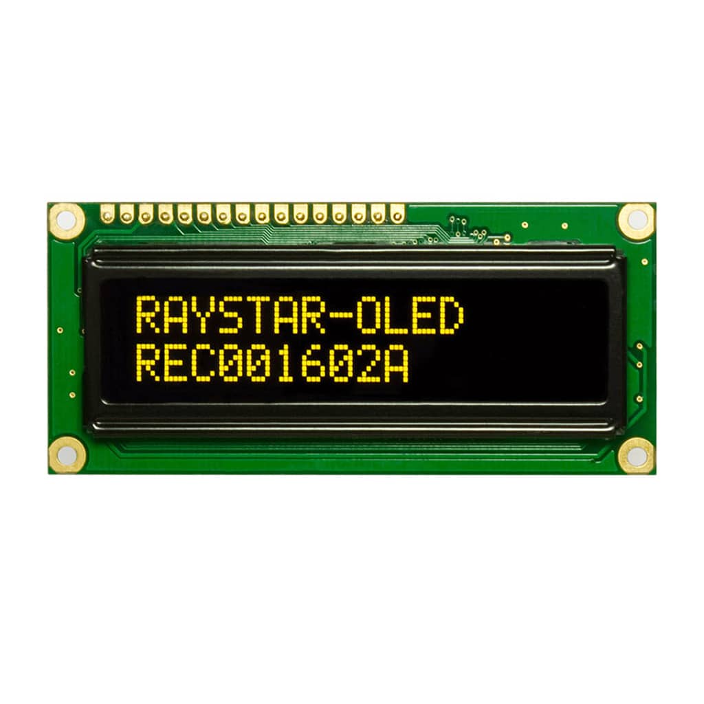The REC001602A series Chip-On-Board Passive Matrix OLED offers 16×2 characters .With an active area of 56.95mm x 11.85mm within a viewable area of 66.0mm x 16.0mm