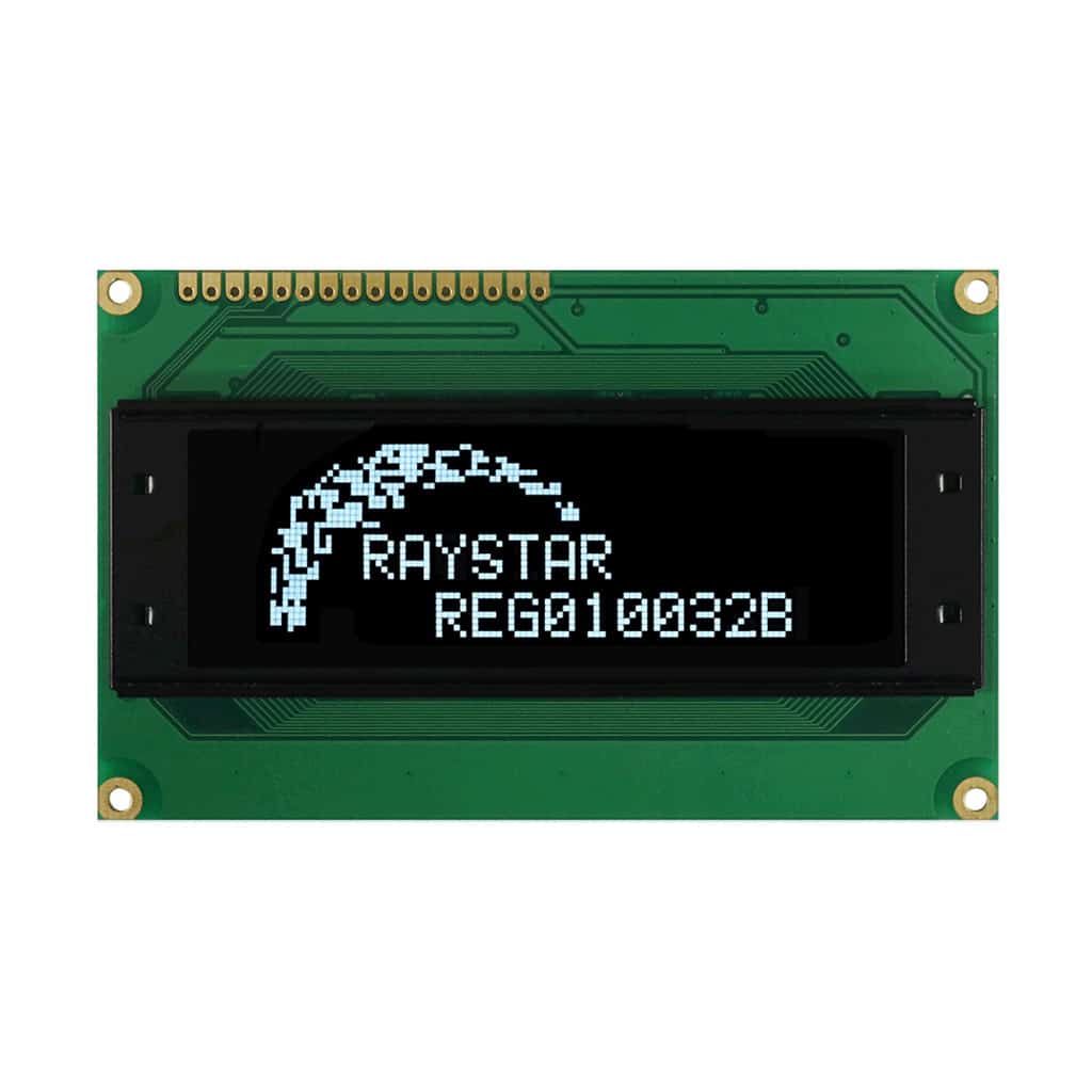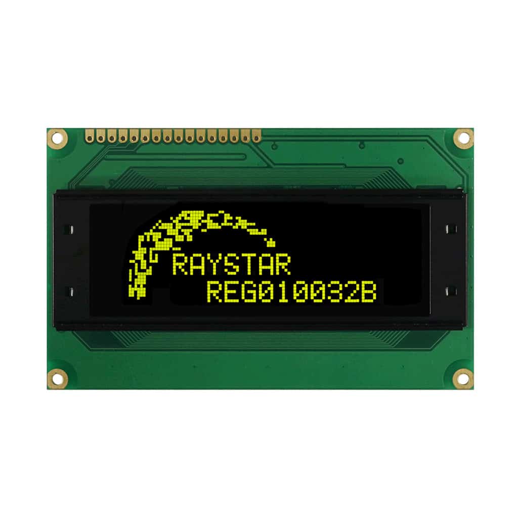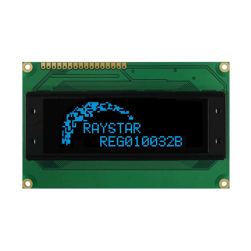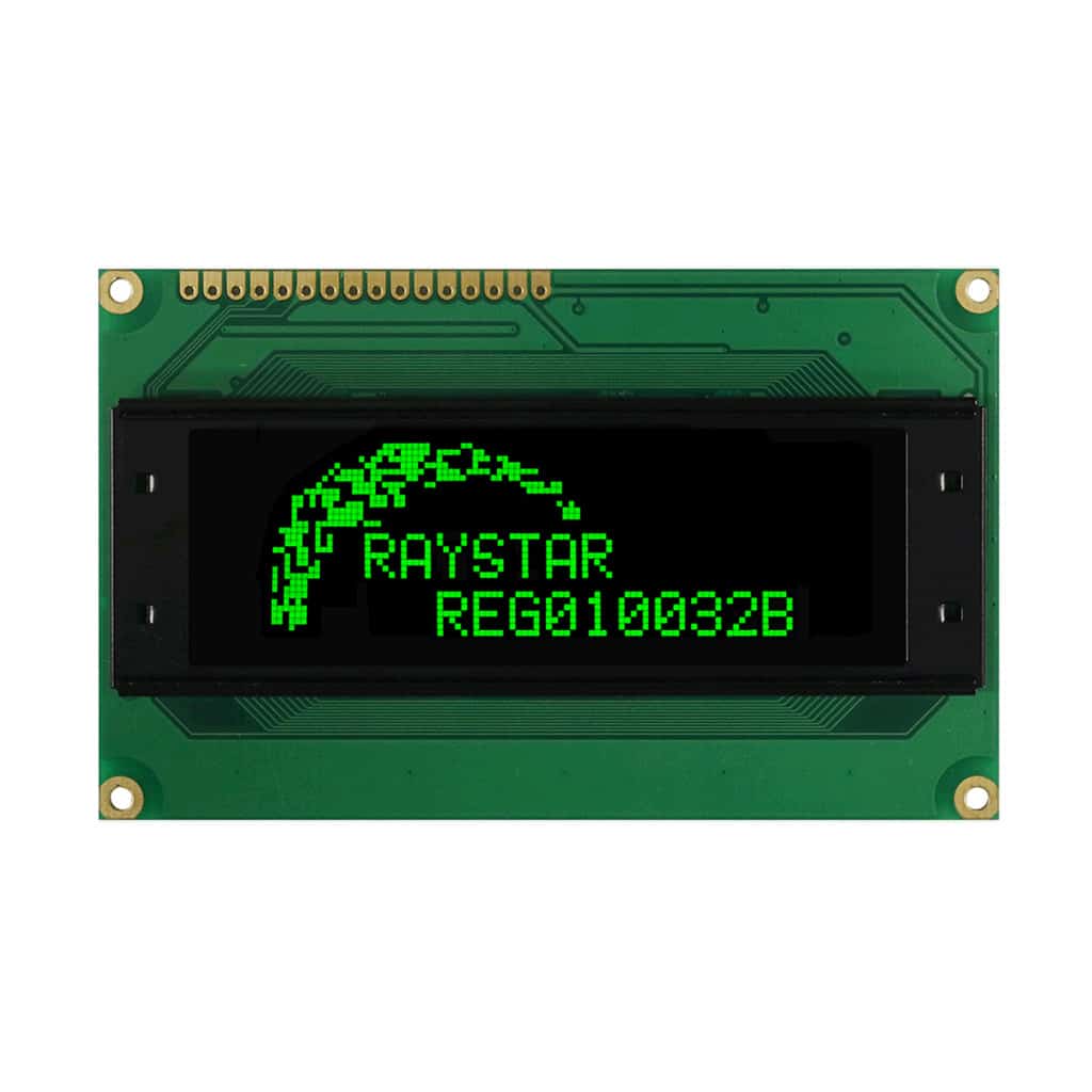 The REG010032B series is a Chip-On-Board OLED offering 100×32 pixels, with an active area of 58.95mm x 19.15mm within a viewable area of 77.0mm x 25.2mm, it comes with an integrated RS0010 IC, and is available in Blue, Green, White or Yellow