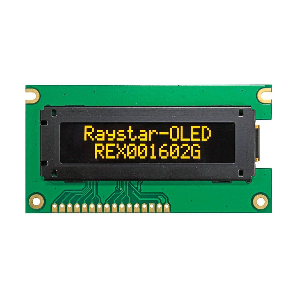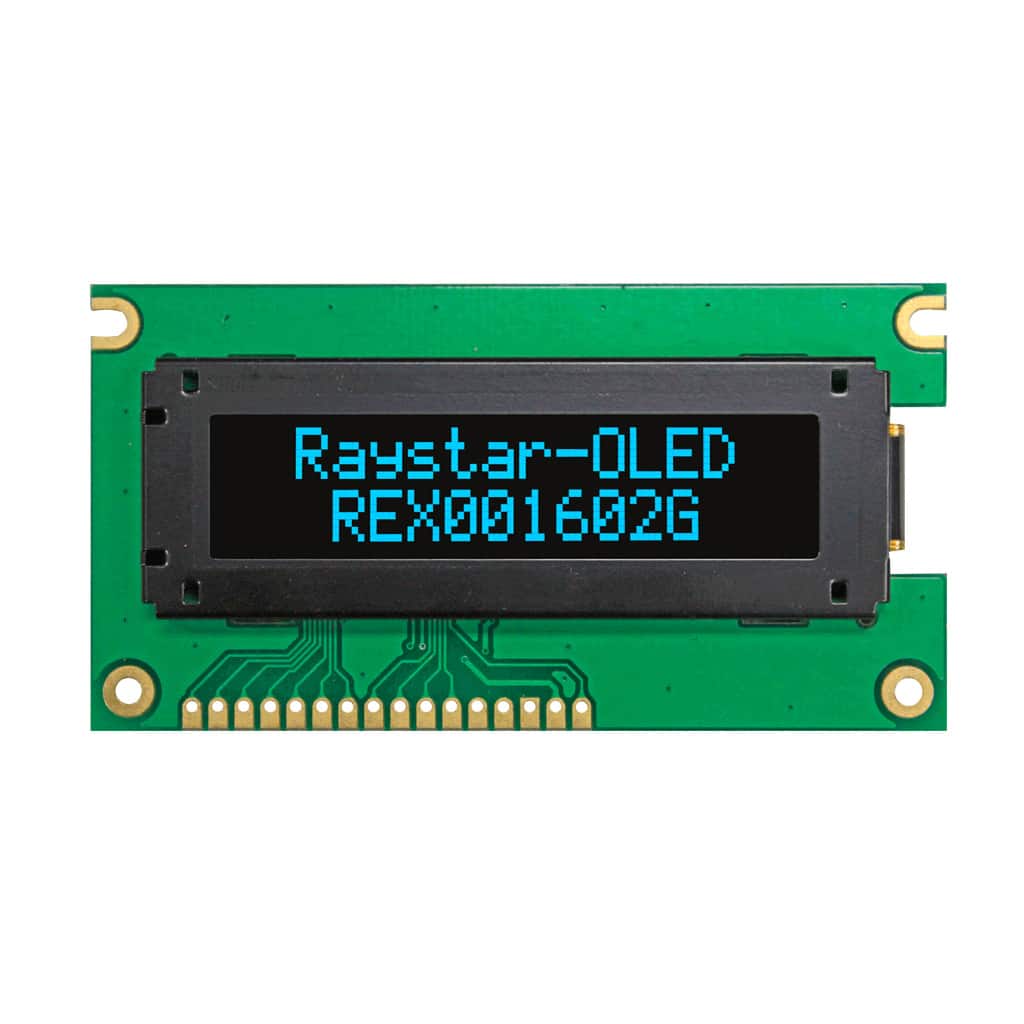 The REX001602G series Chip-On-Glass Passive Matrix OLED offers 16×2 characters .With an active area of 56.22mm x 11.52mm within a viewable area of 58.22mm x 12.52mm