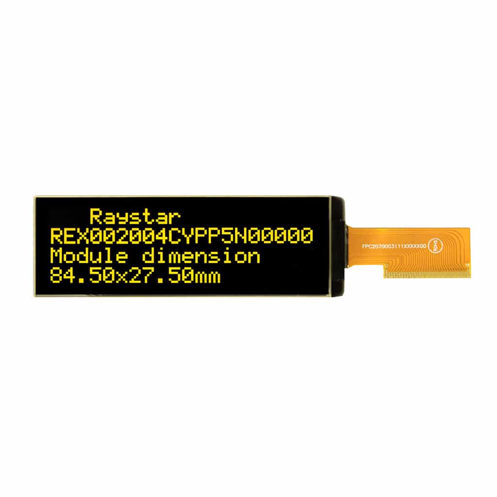 The REX002004C series Chip-On-Glass Passive Matrix OLED offers 20×4 characters .With an active area of 70.42mm x 20.82mm within a viewable area of 752.42mm x 22.82mm