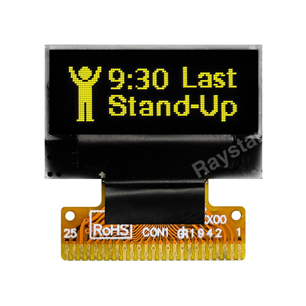 The REX009632B-Hotbar series is a 0.68″ Chip-On-Glass OLED offering 96×32 pixels, with an active area of 16.298mm x 5.418mm within a viewable area of 17.298mm x 6.418mm,  it comes with an integrated SSD1305 IC, and is available in White or Yellow.