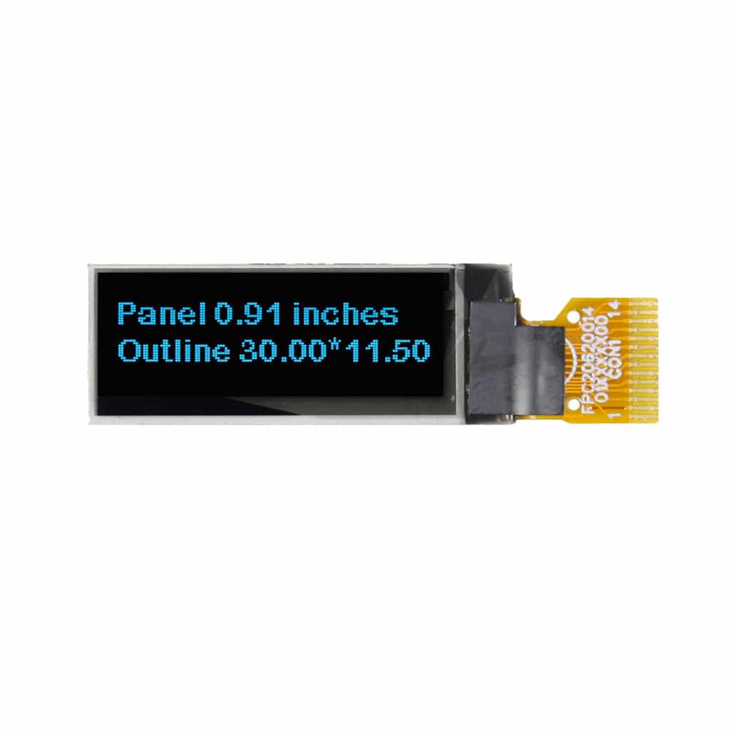 The REX012832F series is a Chip-On-Glass OLED offering 128×32 pixels within a 24.384mm x 7.584mm viewable area, it comes with an integrated SSD1306BZ IC, and is available in Blue, White or Yellow. This device has an I2C interface