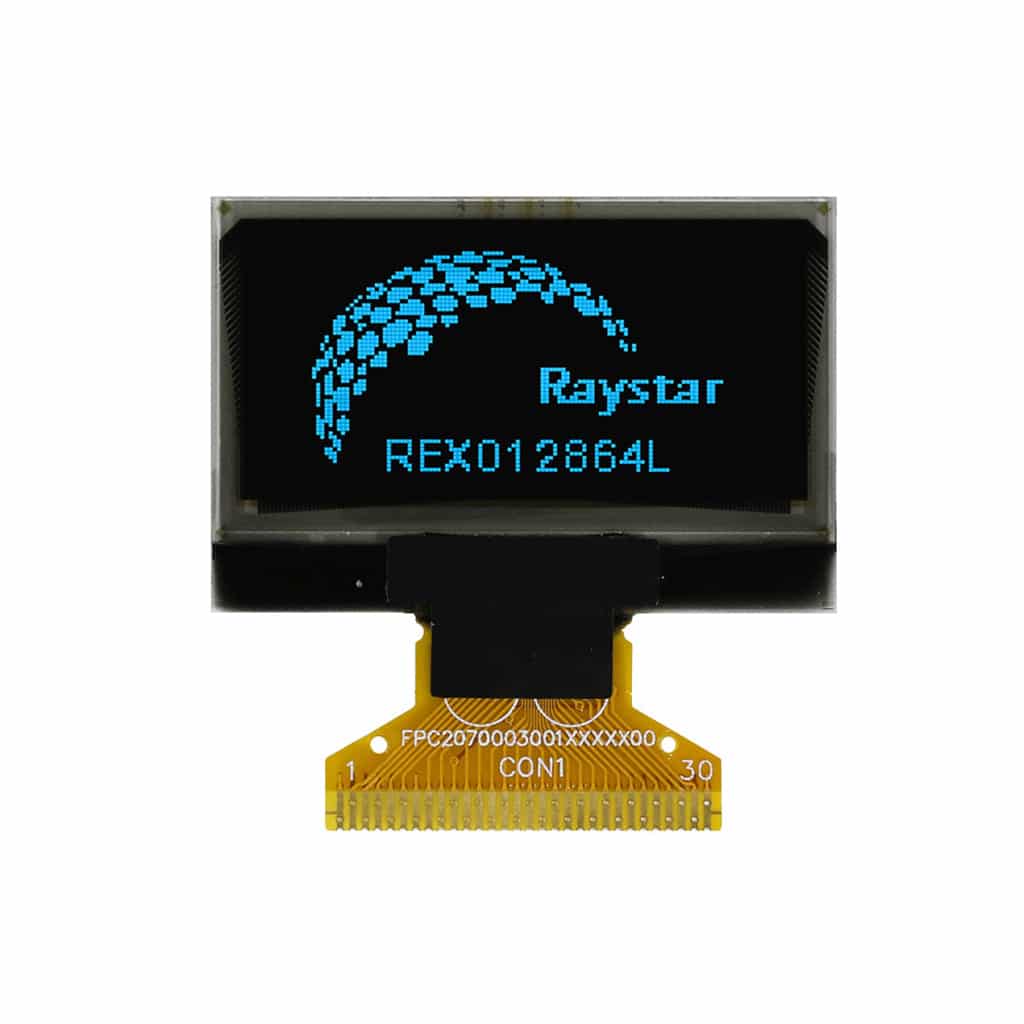 The REX012864L-Hotbar series is a 1.28″ Chip-On-Glass OLED offering 128×64 pixels within a 31.32mm x 15.62mm viewable area, it comes with an integrated SH1106G IC, and is available in Blue, White or Yellow. This device has a choice of 6800, 8080, SPI or I2C interface.