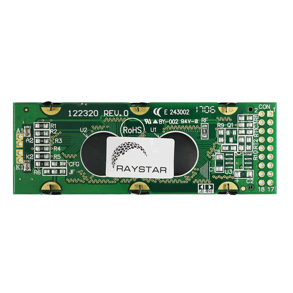 The RG12232D series is a Chip-On-Board LCD offering 122×32 pixels, with an active area of 53.64mm x 15.64mm within a viewable area of 60.0mm x 18.0mm