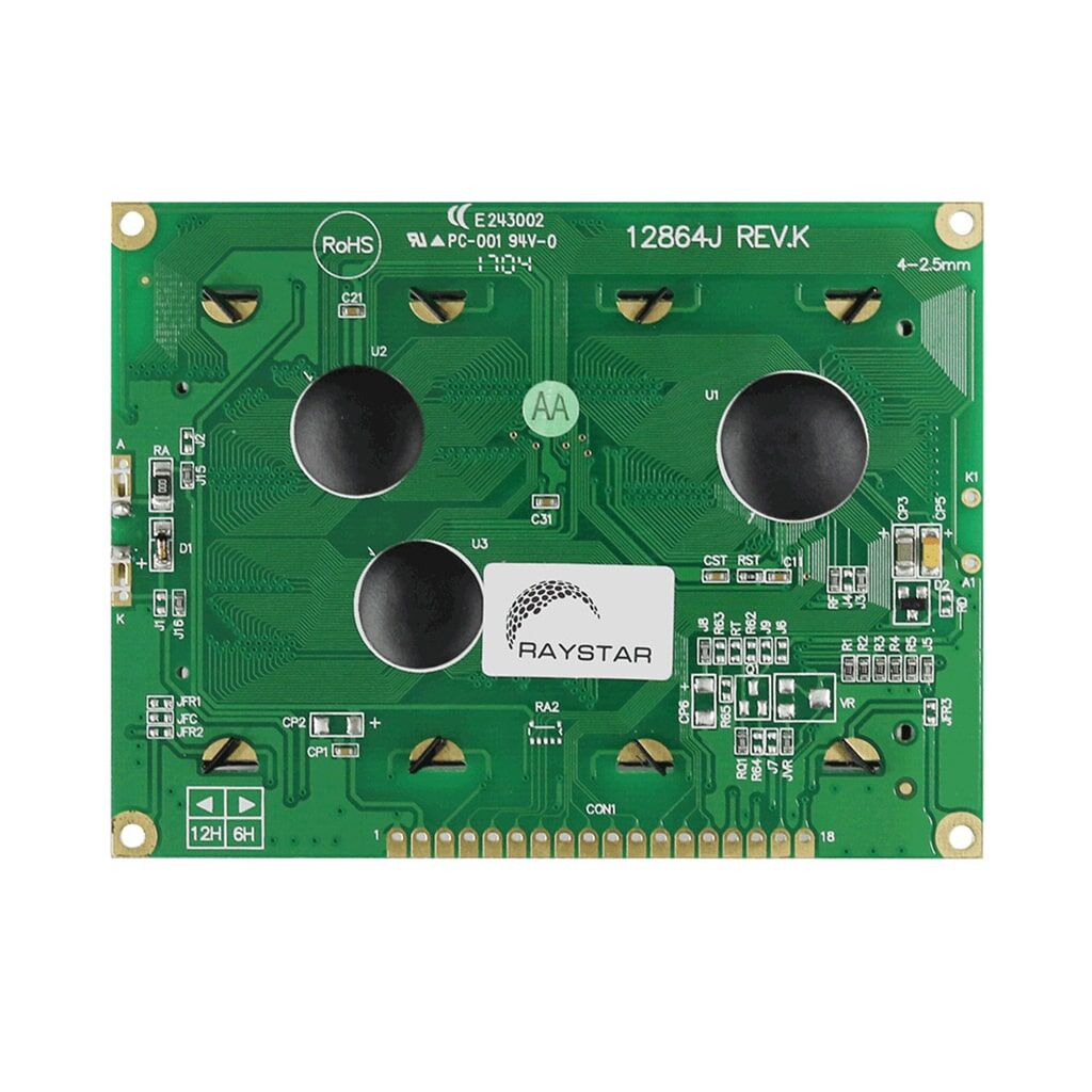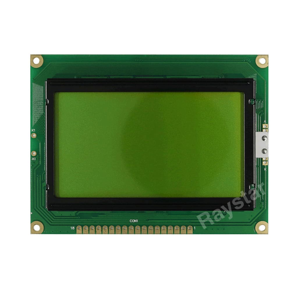The RG12864A2 series is a standard Chip-On-Board LCD, offering 128×64 pixels within a 72.0mm x 40.0mm viewable area, with a built in controller (ST7920)