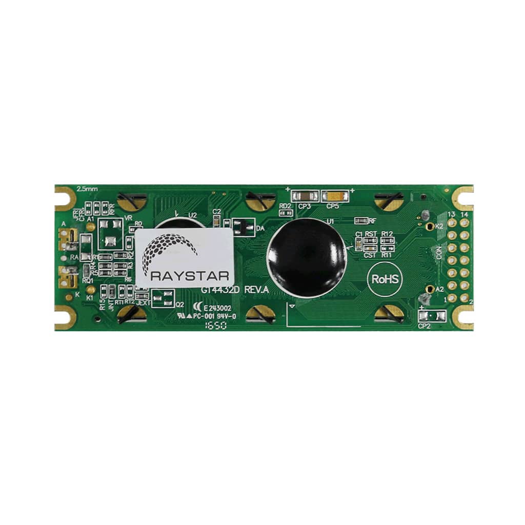 The RG14432D series is a standard Chip-On-Board LCD, offering 144×32 pixels within a 66.0mm x 16.0mm viewable area, with a built in ST7920 controller (or equivalent)