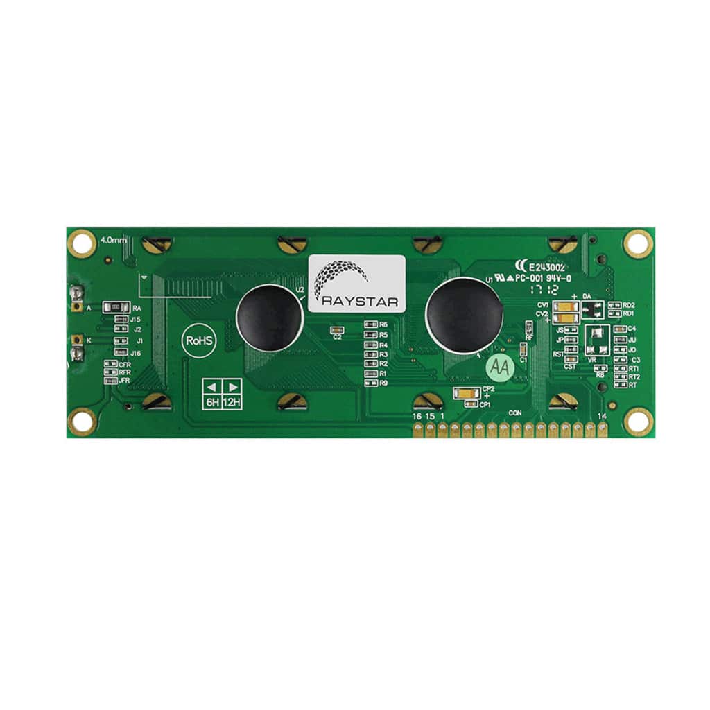 The RG16032E series is a standard Chip-On-Board LCD, offering 160×32 pixels within a 99.0mm x 24.0mm viewable area, with a built in ST7920 controller (or equivalent)