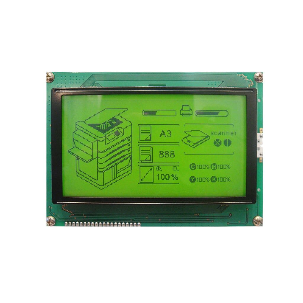 The RG240128B series is a standard Chip-On-Board LCD, offering 240×128 pixels within a 114.0mm x 64.0mm viewable area, with a built in RA6963 controller (or equivalent)