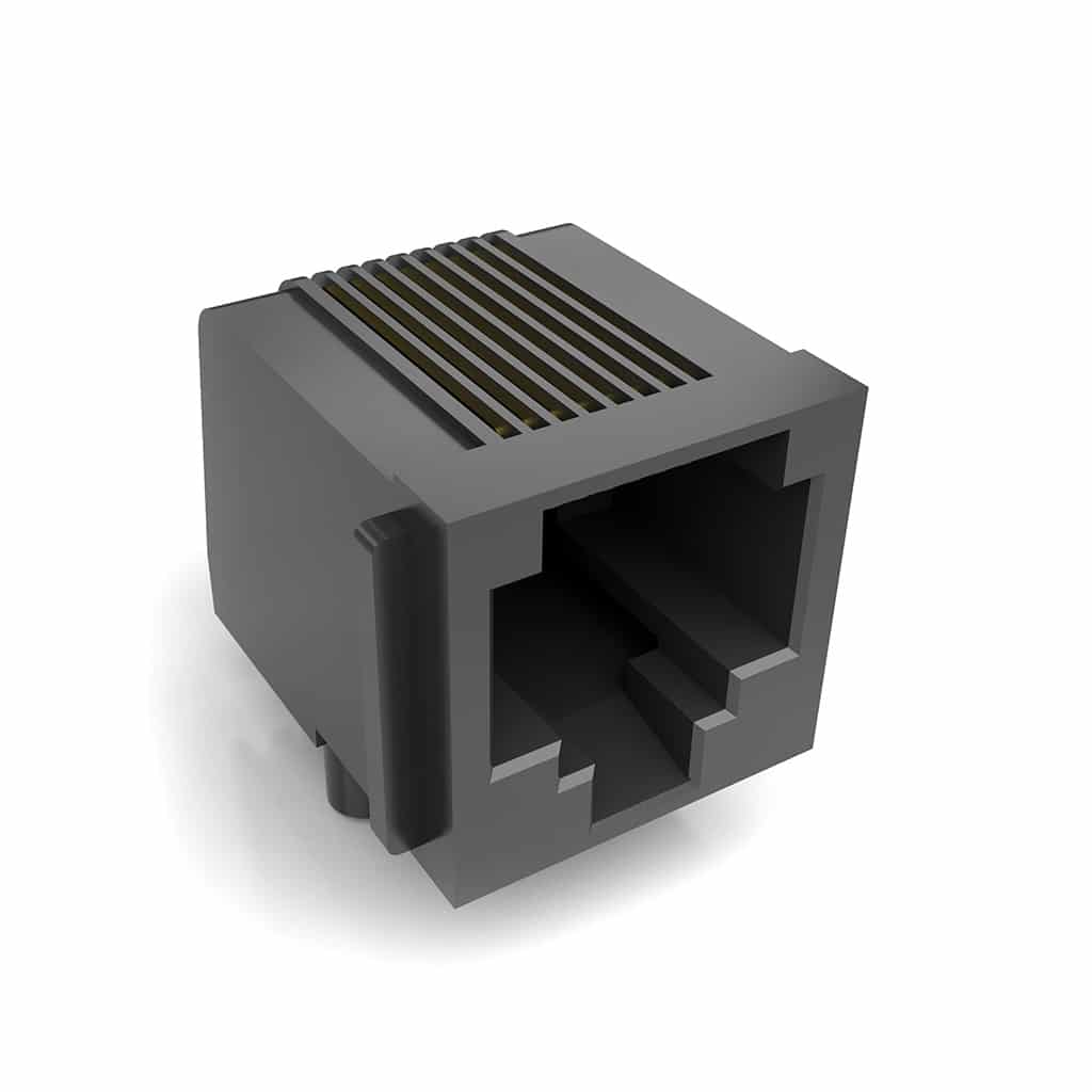 The DS1134-02 is a RJ45 8P8C socket from Connfly. The quality right angle socket has a PBT UL 94V-0 flangeless housing with Gold Plated contacts. 15.6mm height.