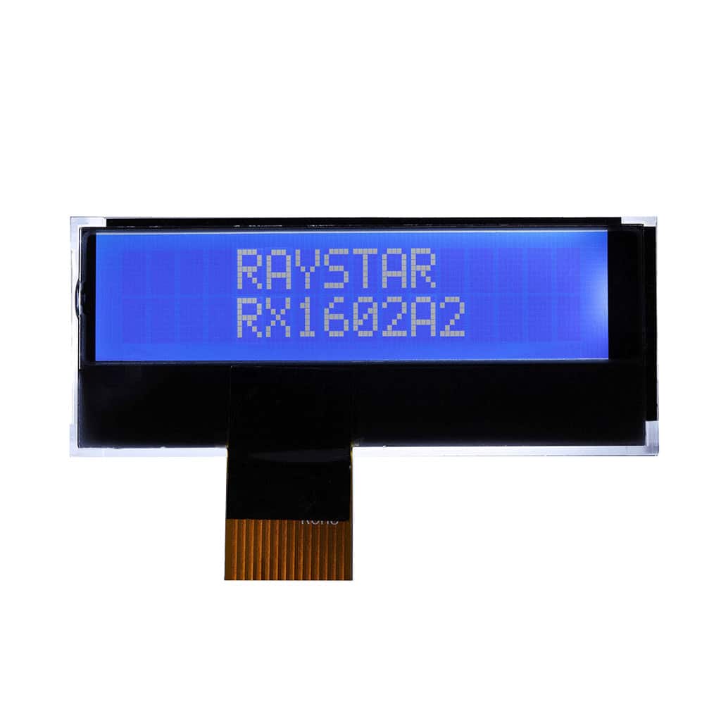 The RX1602A2 Chip-On-Glass series of character displays is a standard range produced by Raystar Optronics, and is a range designed for the industrial market. Available in either STN or FSTN technologies, customers can also choose if they require a reflective, transflective or transmissive polariser as well as a choice of LED backlight colour (if a backlight is required). Using the ST7032i controller, customers can also select which font type they require, from English/Japanese, English/European or English/Cyrillic