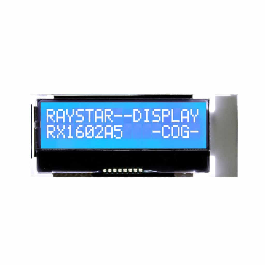 The RX1602A5 Chip-On-Glass series of character displays is a standard range produced by Raystar Optronics, and is a range designed for the industrial market. Available in either STN or FSTN technologies, customers can also choose if they require a reflective, transflective or transmissive polariser as well as a choice of LED backlight colour (if a backlight is required). Using the ST7032i controller, customers can also select which font type they require, from English/Japanese, English/European or English/Cyrillic