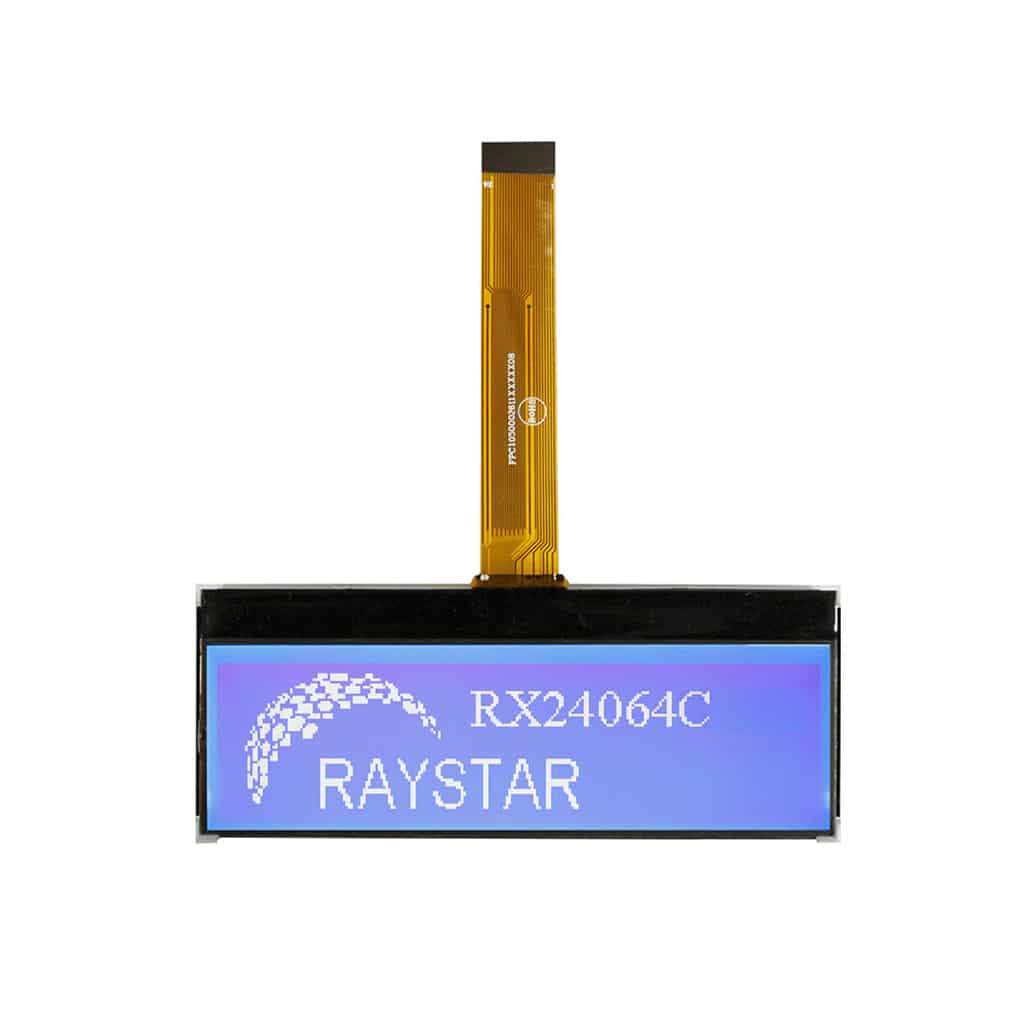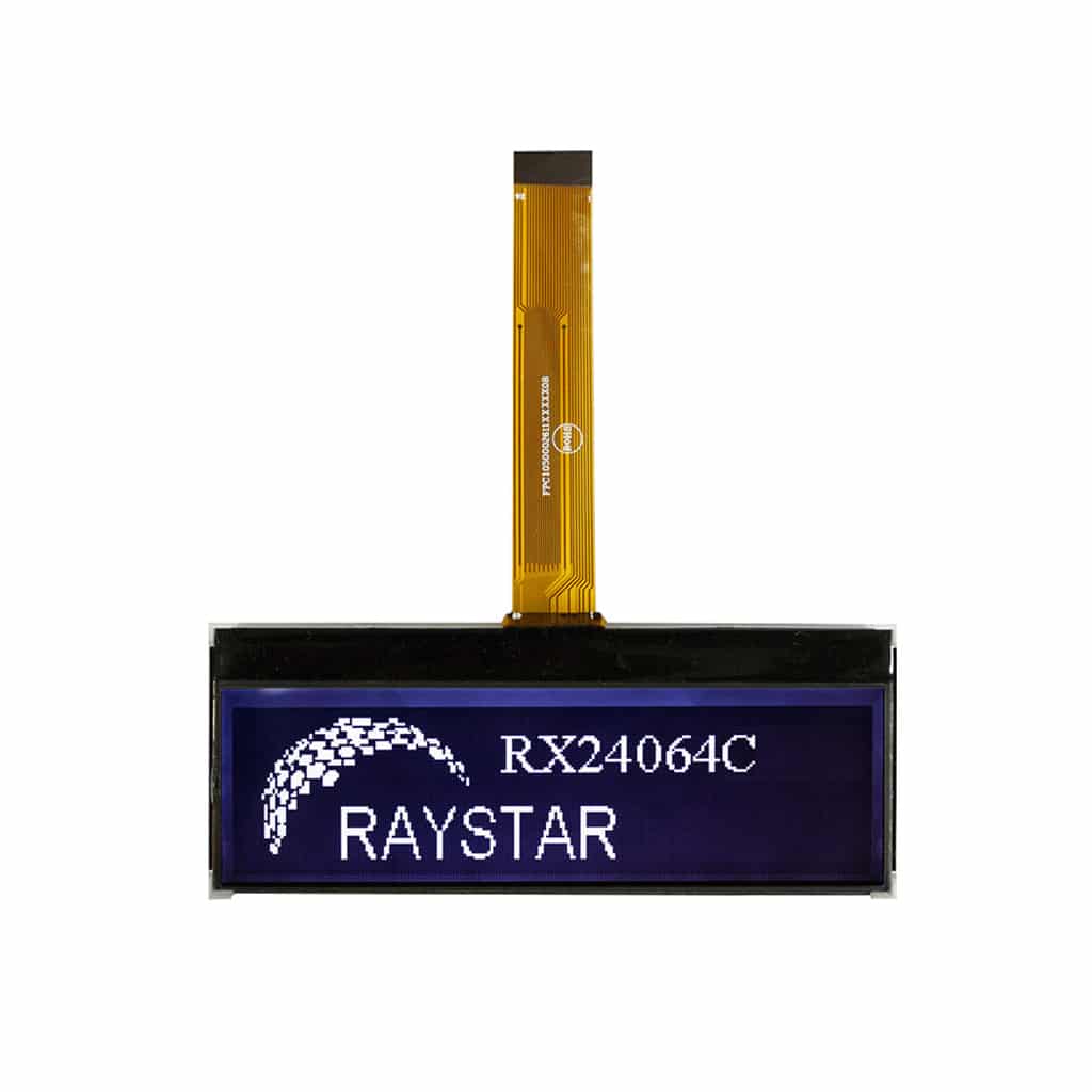 The RX24064C series is a standard Chip-On-Glass LCD offering 240×64 pixels within a 106.2mm x 31.2mm viewable area, with a built in ST7586S-G4 controller (or equivalent)